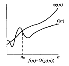 定义:若存在正常数 \(c\)、\(n_0\),使得对所有 \(n\ge n_0\),有 \(0\le f(n)\le cg(n)\),则记 \(f(n)=O\big(g(n)\big)\)。