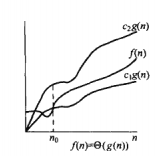 定义:若存在正常数 \(c_1\)、\(c_2\)、\(n_0\),使得对所有 \(n\ge n_0\),有 \(0\le c_1g(n)\le f(n)\le c_2g(n)\),则称 \(f(n)=\Theta\big(g(n)\big)\)。
