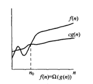定义:若存在正常数 \(c\)、\(n_0\),使得对所有 \(n\ge n_0\),有 \(0\le cg(n)\le f(n)\),则称 \(f(n)=\Omega\big(g(n)\big)\)。